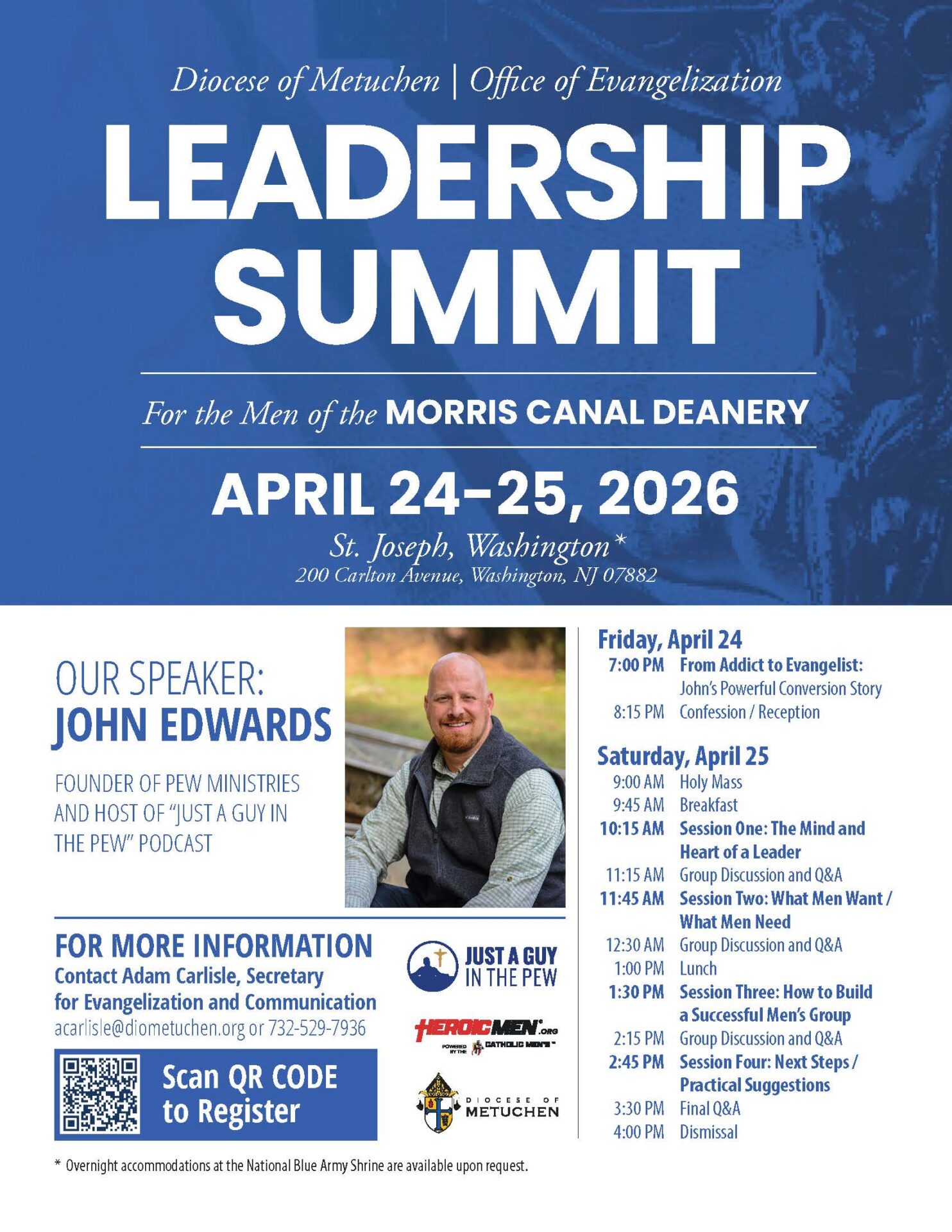 John will leading a Men's Ministry Leadership Summit for the Diocese of Metuchen - Morris Canal Deanery. All men are invited to attend. Location: National Blue Army Shrine | 674 […]